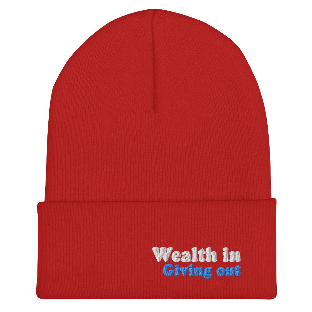 Cuffed White Blue Wealth Giving Beanie